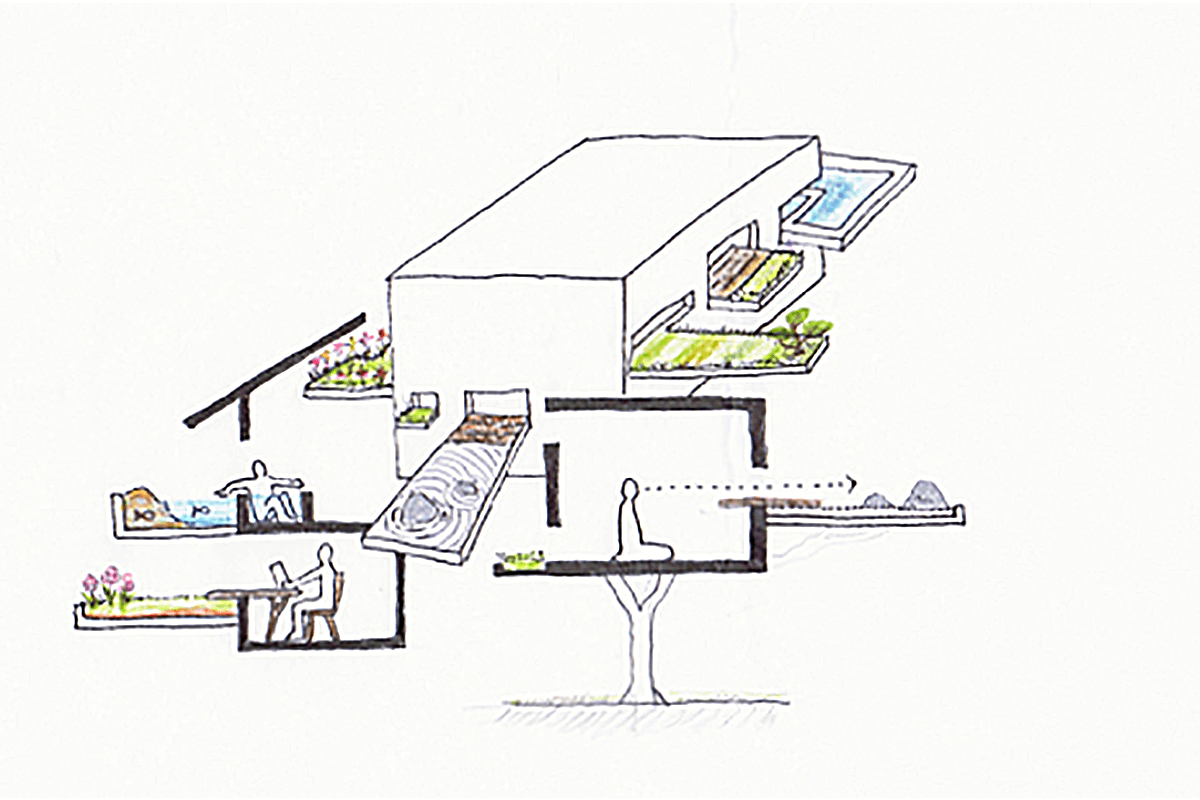 「飛庭」とは田んぼや坪庭などのように自然を四角く切り取る日本人の感性、それを空中に表現したものの総称。